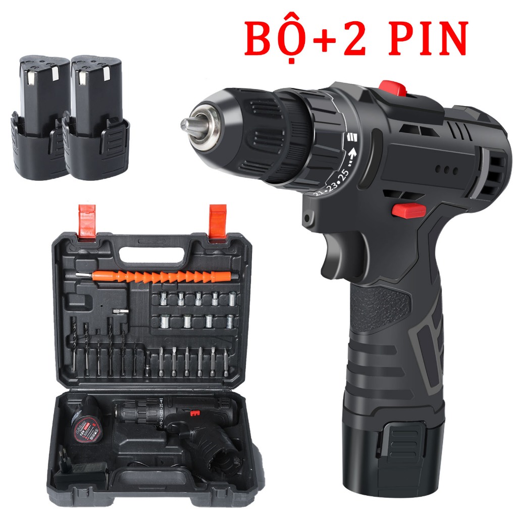 Máy Khoan Pin Cầm Tay Đa Năng 1800W Lực Siết 45Nm Động Cơ Lõi Đồng Kèm Bộ Phụ Kiện 25 Món