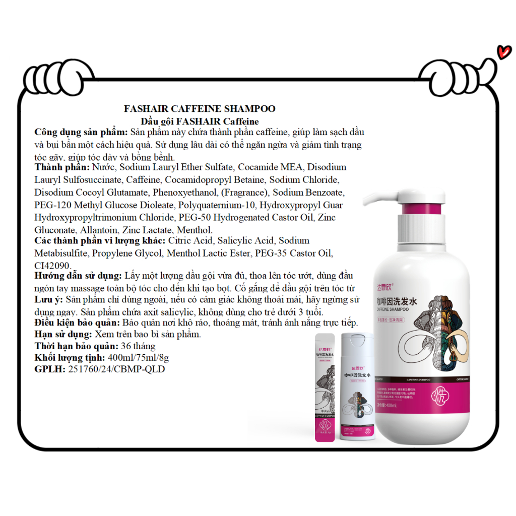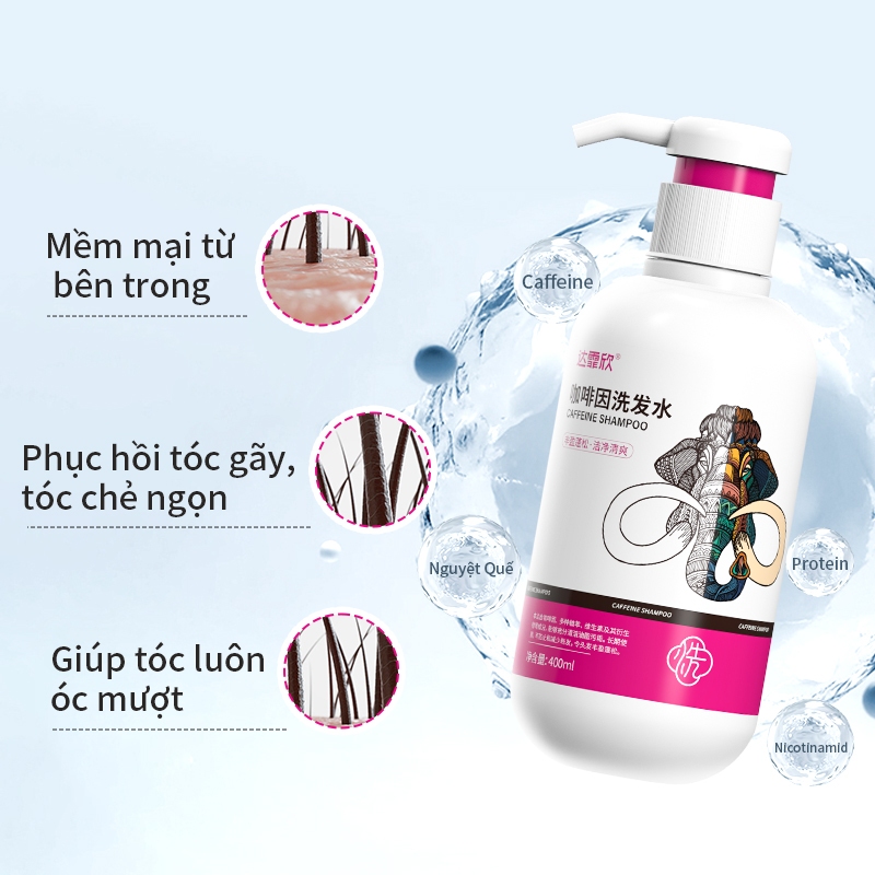 Dầu Gội Caffeine Làm Sạch Sâu, Kiểm Soát Dầu, Tóc Bồng Bềnh, Giảm Rụng Tóc–Phục Hồi Tóc Khỏe, 400ml