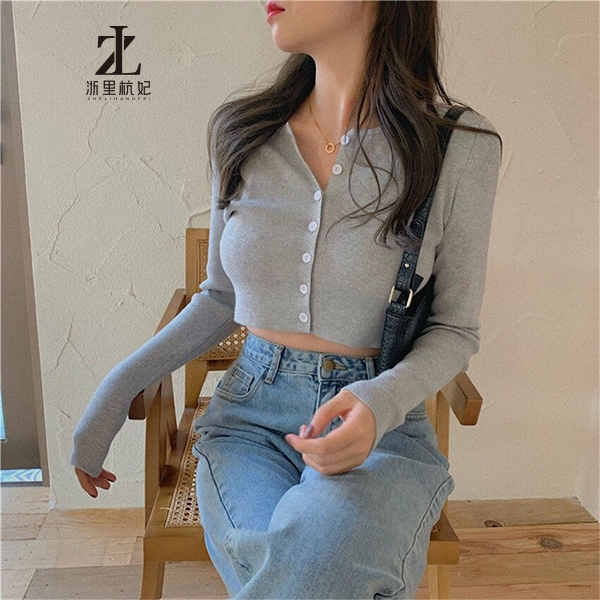 ZHELIHANGFEI Cổ Tròn Mỏng Phong Cách Màu Trơn Dệt Kim Cardigan Nữ Slim-fit Ôm Hơn Nhìn Ngắn Áo Khoác ins