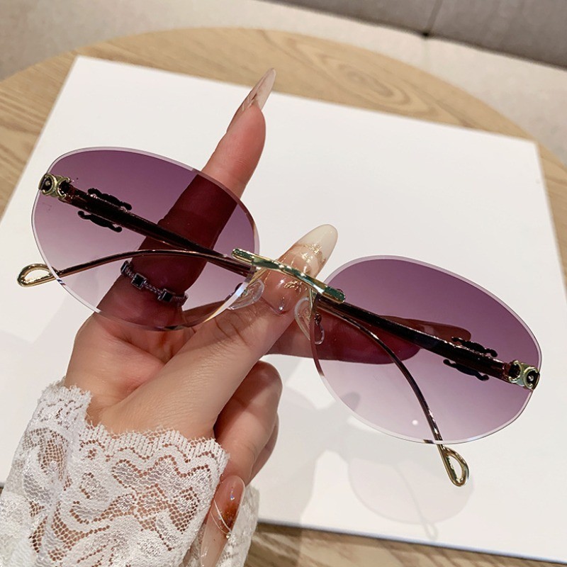 (JIUERBA) Kính râm chuyển màu hình bầu dục không khung kim loại thời trang phương Tây dành cho nam và nữ