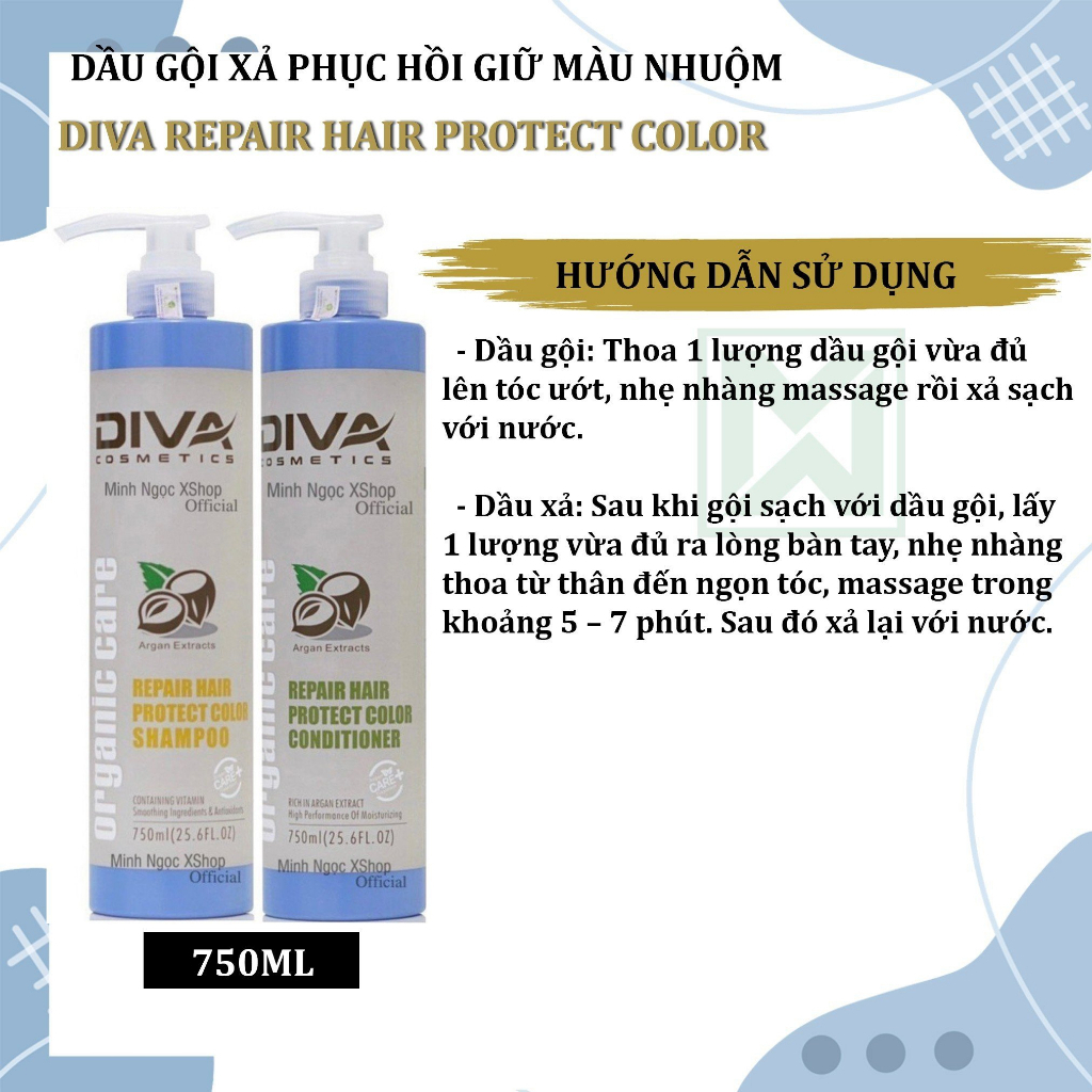 Dầu Gội Xả, Tinh Dầu Dưỡng DIVA Protect Color Giữ Màu Tóc Nhuộm, Phục Hồi, Mềm Mượt