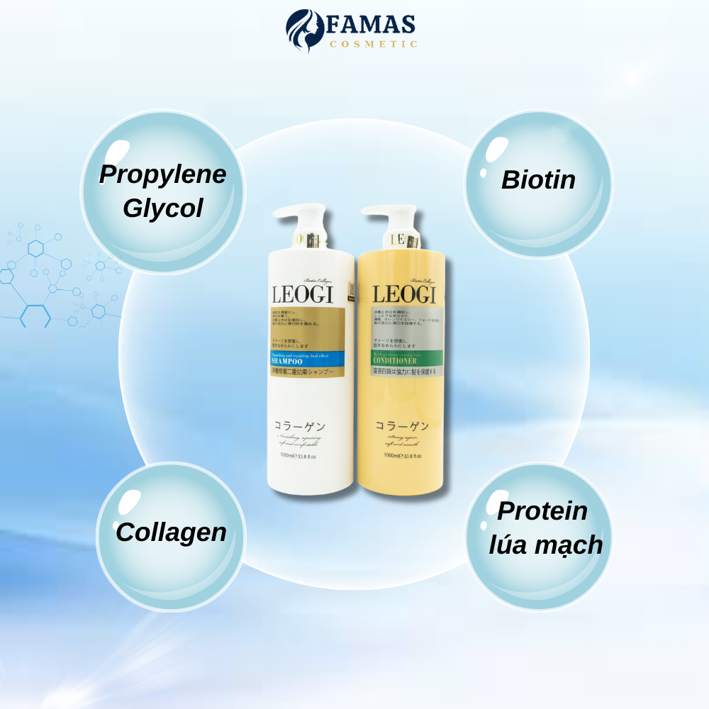 Cặp Dầu Gội Xả LEOGI Nhật Bản Biotin Collagen 1000ml – Phục Hồi Tóc Hư Tổn, Giảm Rụng, Mềm Mượt, Chăm Sóc Tóc