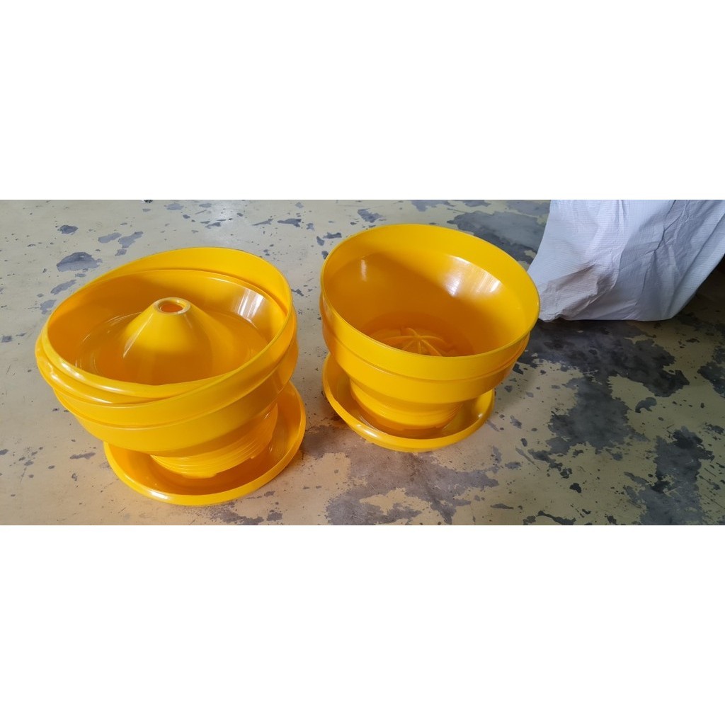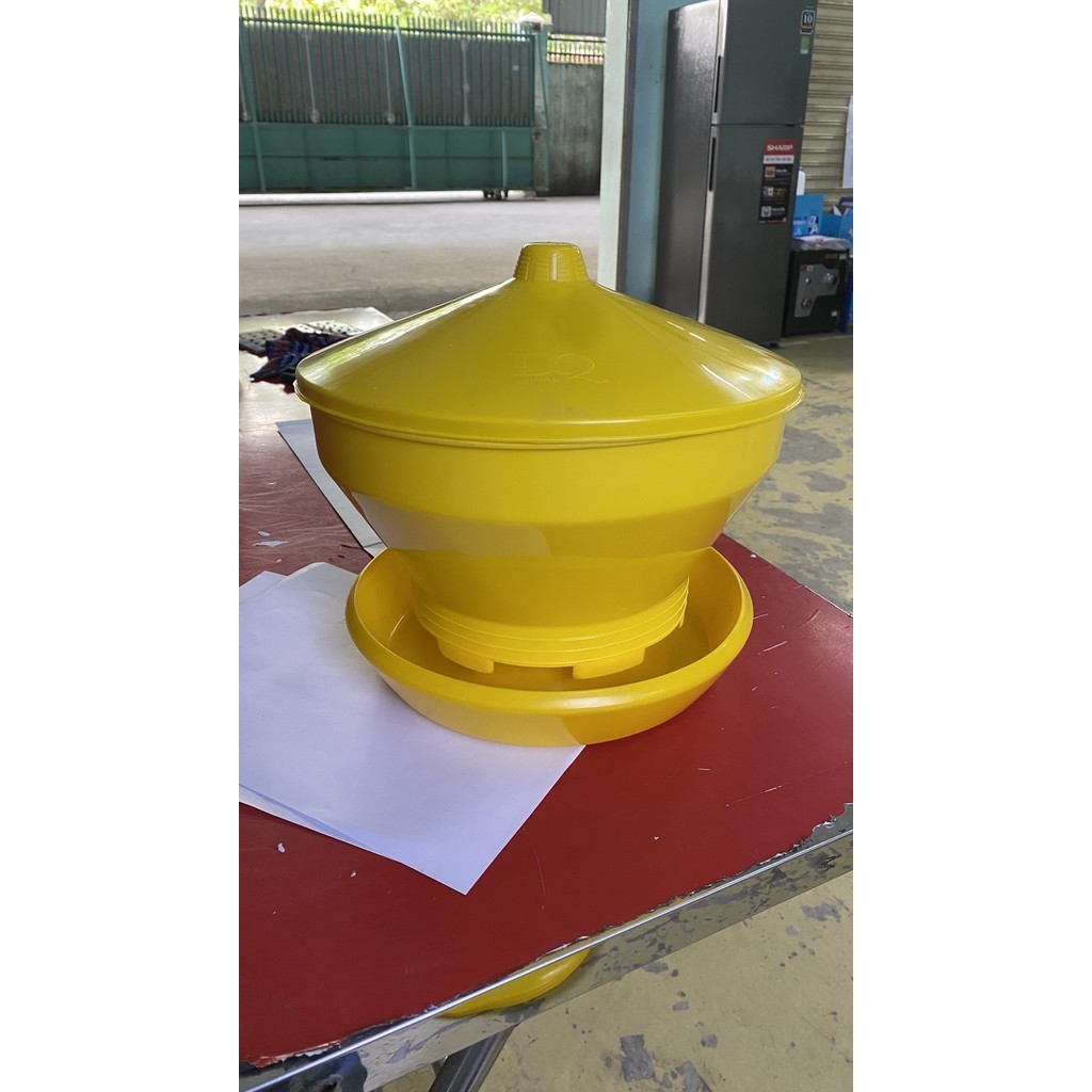 Máng ăn gà con xoay màu vàng bằng nhựa bao gồm nắp DQ chất lượng bền đẹp đựng 4kg cám - HH 1163