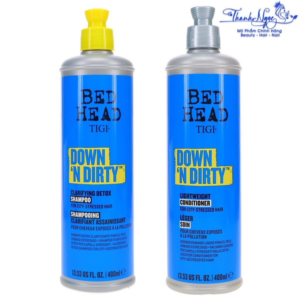 Dầu gội xả làm sạch sâu, sảng khoái tức thì Tigi Bed Head Down 'N Dirty Clarifying Detox 400mlx2 [ TN ]
