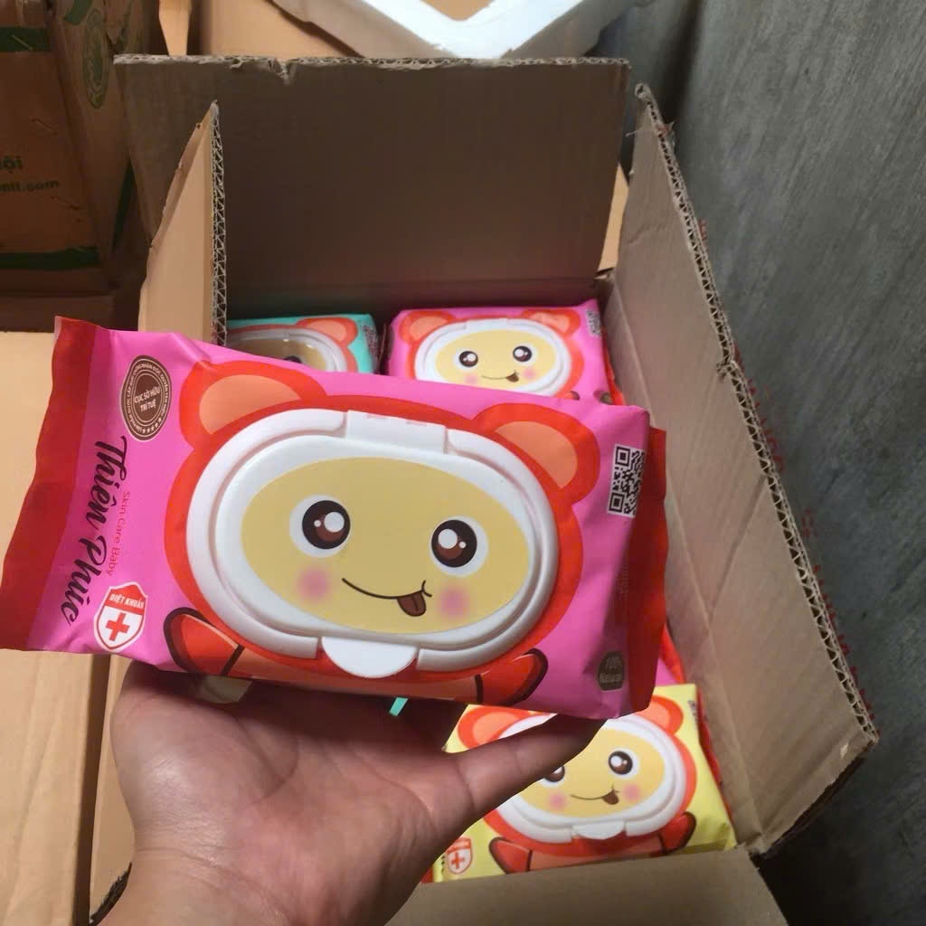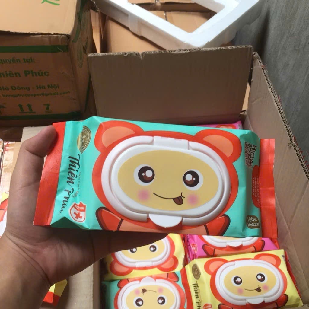 Khăn giấy ướt Thiên Phúc hình gấu gói 120 tờ chính hãng không mùi, an toàn sử dụng made in Việt Nam