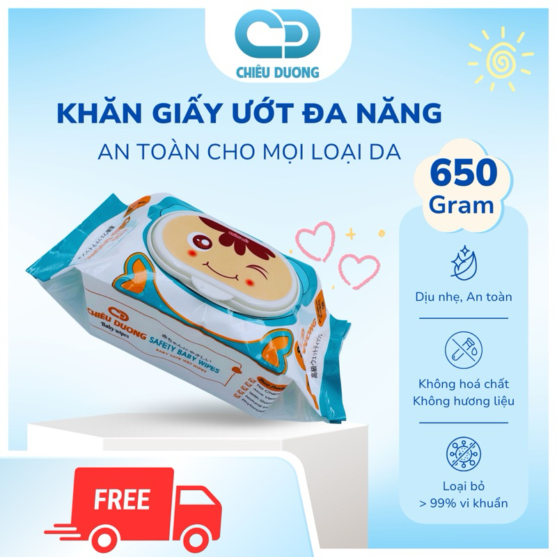 Thùng 10 gói Khăn Ướt Chiêu Dương 650gr – Không Cồn, Không Mùi, An Toàn Cho Bé – Vải Dày Dai – Nắp Bật Tiện Dụng