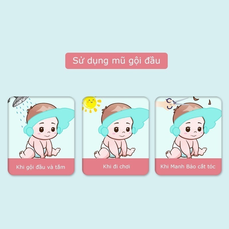Nón Gội Đầu Cho Bé Hình Thú Dễ Thương, chống nước vào tai và mặt bé, điều chỉnh size cho bé 0-8 tuổi SA888