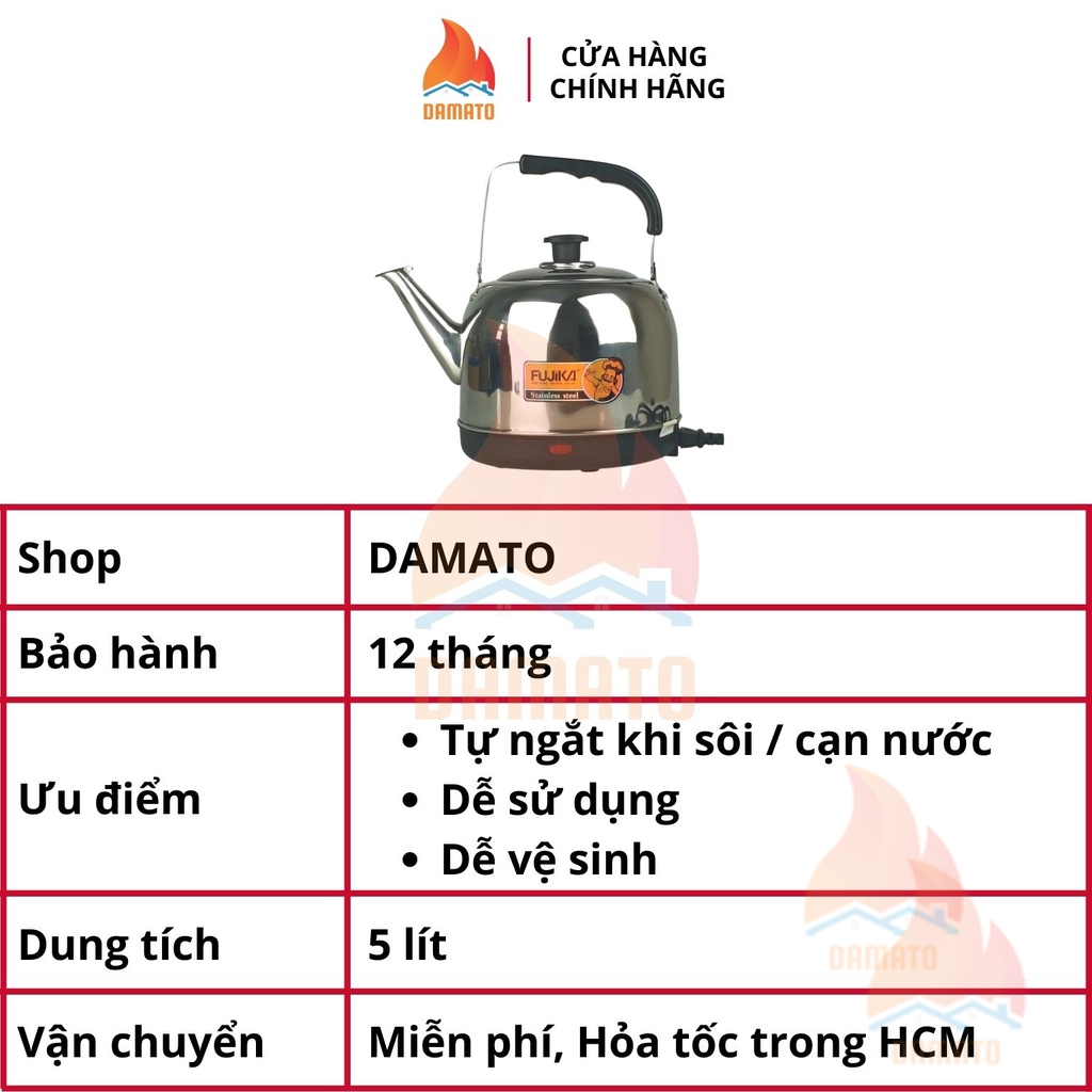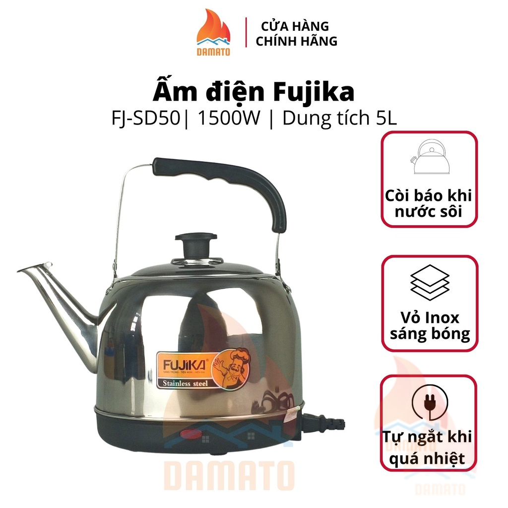 Bình đun siêu tốc 5 Lít, ấm siêu tốc Fujika FJ-SD50 bền đẹp, nấu nước an toàn, thân ấm inox