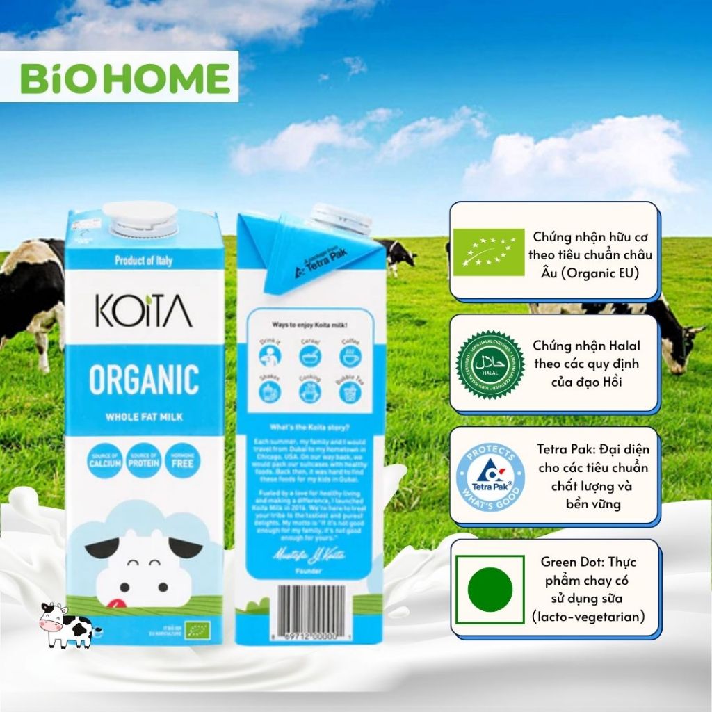 Sữa bò hữu cơ Koita nguyên kem 1L - Hương vị tự nhiên, bổ sung canxi & vitamin, đạt chuẩn EU Organic