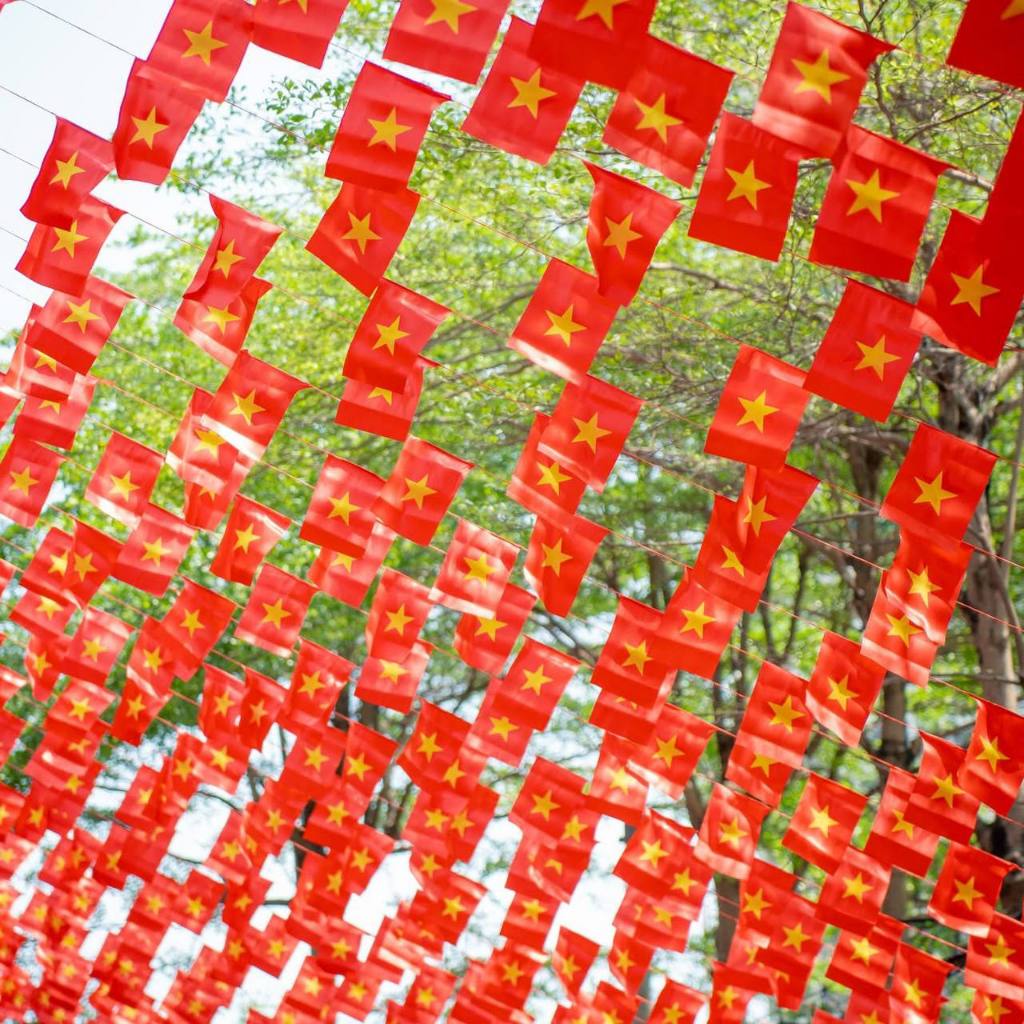 Dây Cờ Đỏ Sao Vàng in 2 Mặt Dài 10 Mét Gồm 20 Lá Cờ Trang Trí Lễ Hội 2/9
