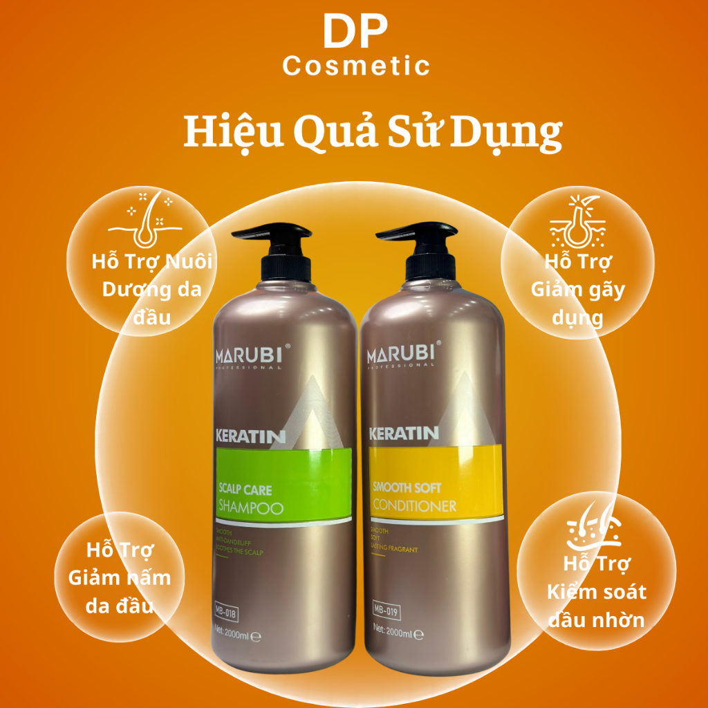 Dầu Gội Xả MARUBI Keratin 2000ML Sạch Gàu, Ngăn Ngừa Bết Dính,Giảm Thiểu Tóc Gãy Rụng