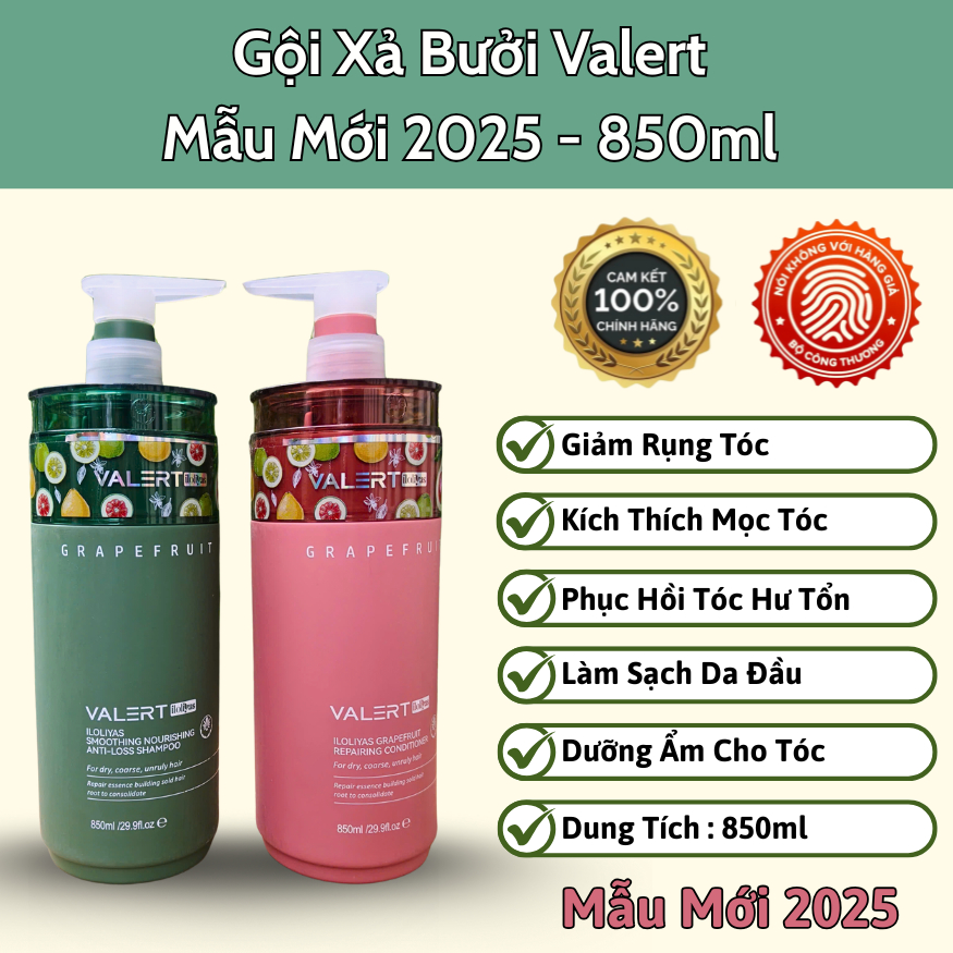 Dầu Gội Xả Bưởi Grapefruit Valert 850ML [ Mẫu Mới 2025 ] Giảm Rụng Tóc Kích Mọc Tóc Phục Hồi Hư Tổn.