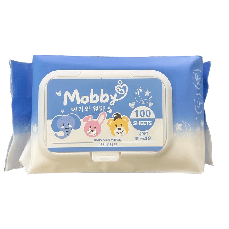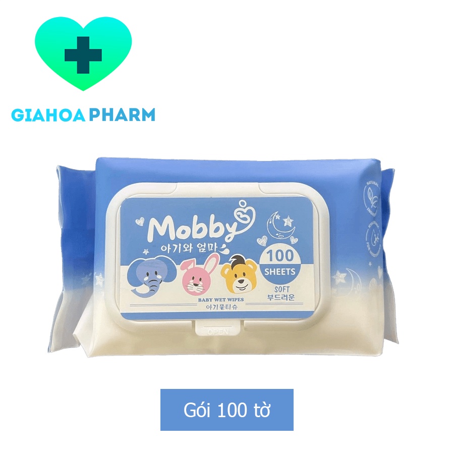 Khăn giấy ướt Mobby không mùi Gói 100 tờ - Công nghệ Hàn Quốc, vải dày, mềm, lau, vệ sinh không kích ứng, an toàn cho bé