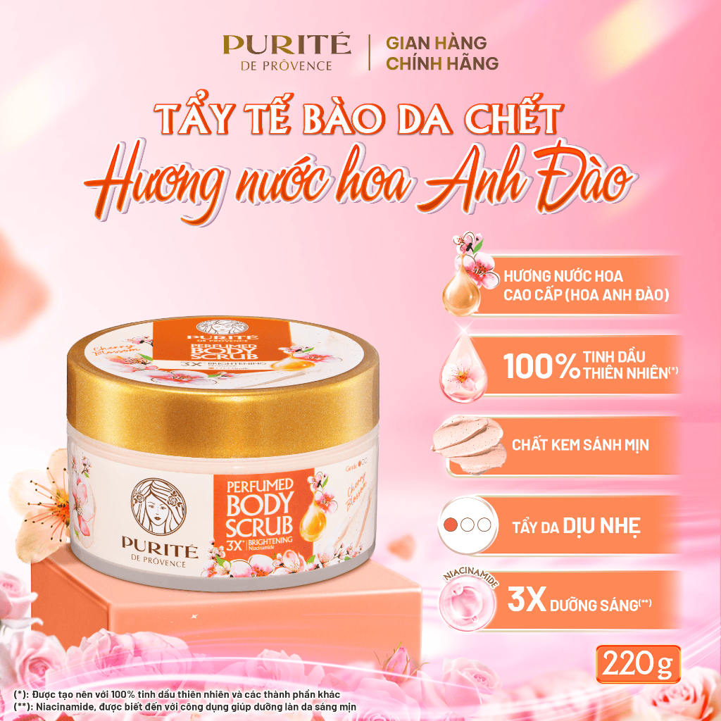 Combo 2 Tẩy Tế Bào Da Chết PURITÉ Dưỡng Sáng Hương Nước Hoa Anh Đào/ Hoa Hồng 220Gx2