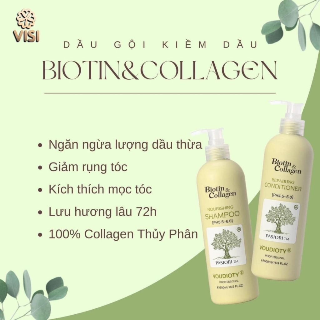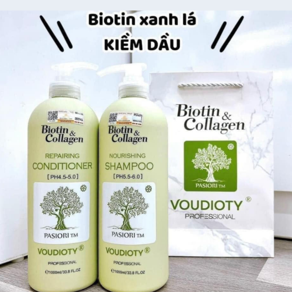 (Màu xanh lá) Cặp Gội Xả BIOTIN COLLAGEN VOUDIOTY Giảm Rụng Tóc, Kiểm Soát Tóc Bết Dầu