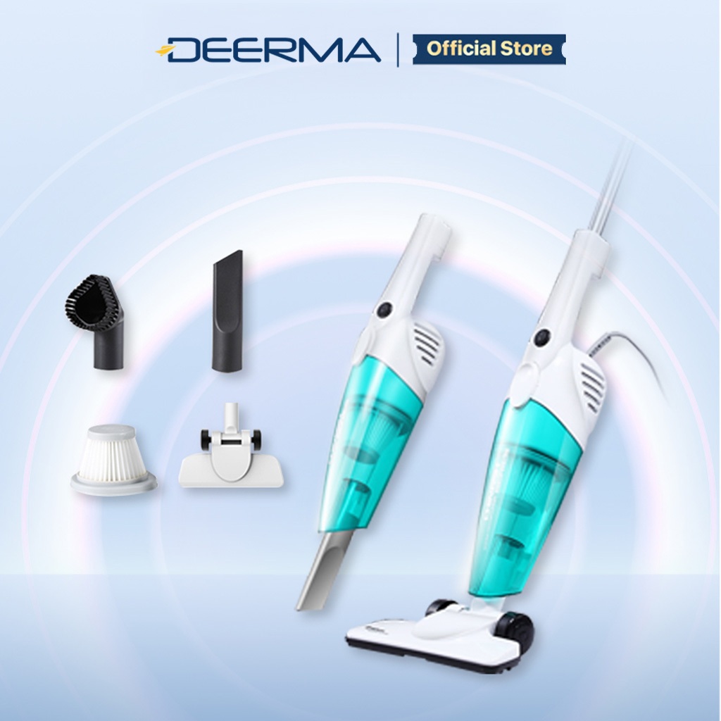 Máy hút bụi cầm tay DEERMA DX118C xanh/xám kèm 3 đầu hút công suất 600W lực hút mạnh 15Kpa - Bảo hành 12 tháng