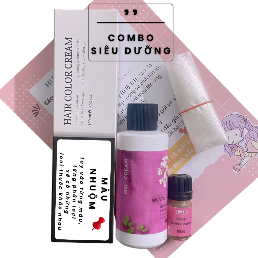 Thuốc nhuộm tóc màu NÂU KHÓI SỮA [ thuốc nhuộm tóc tặng kèm oxy trợ dưỡng và bao tay ]