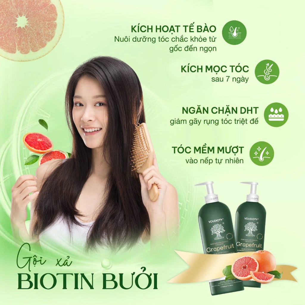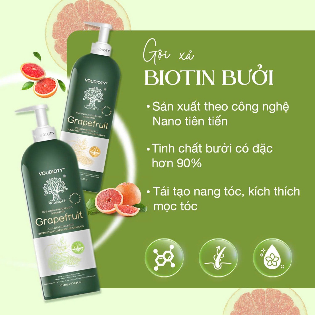 Cặp dầu gội xả Bưởi Biotin Grapefruit Voudioty. Giúp làm mềm mượt tóc, bảo vệ tóc, nhanh mọc tóc
