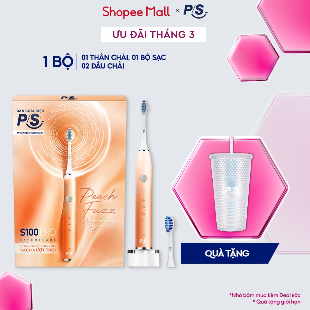 Bàn chải điện P/S S100 Pro phiên bản giới hạn - Công Nghệ Sóng Âm, Chải Sạch Mảng Bám Tới 10X