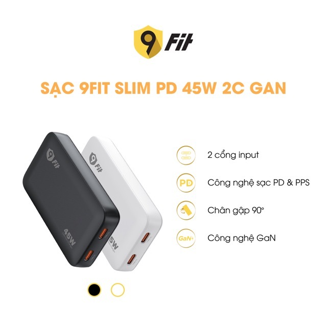 [Dành cho IP 6/16 Series/Android] Combo Sạc Nhanh 35W/45W/65W 9Fit PD GaN C-C và C-LN - Bảo hành 2 năm