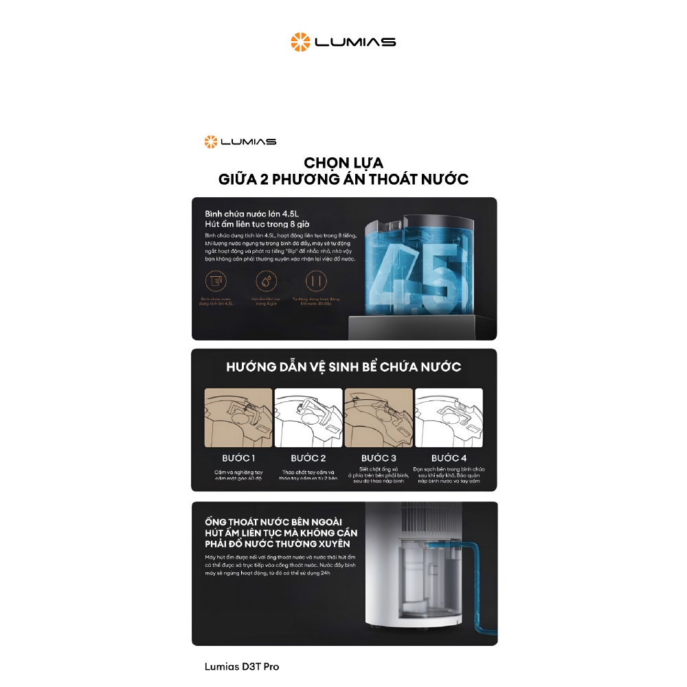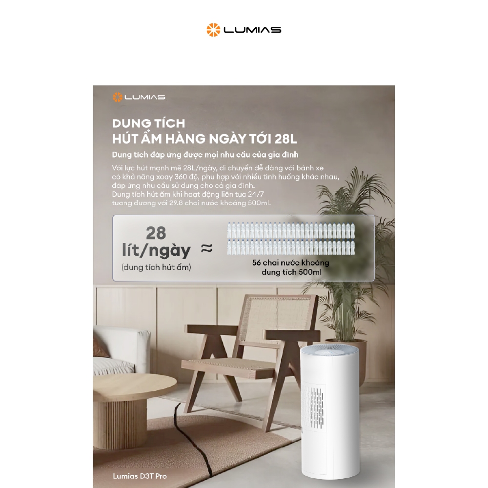 Máy hút ẩm Lumias NWT D3T Pro - 28L, 125m2 - Chế độ hút ẩm đa năng