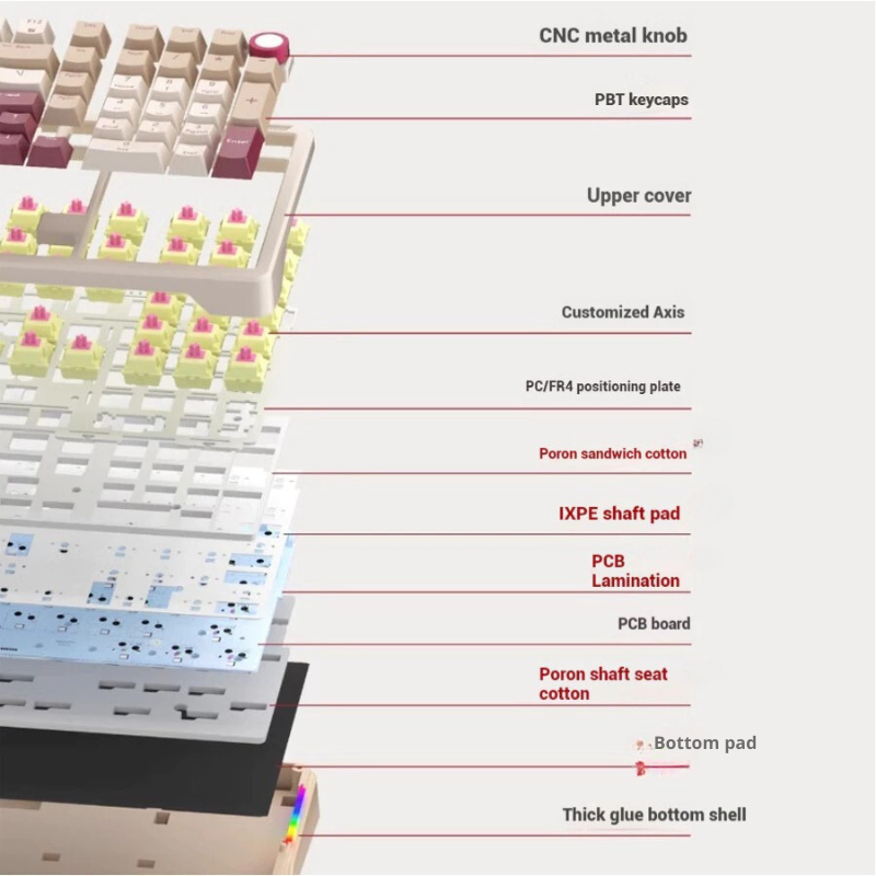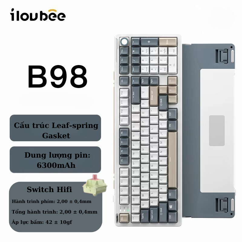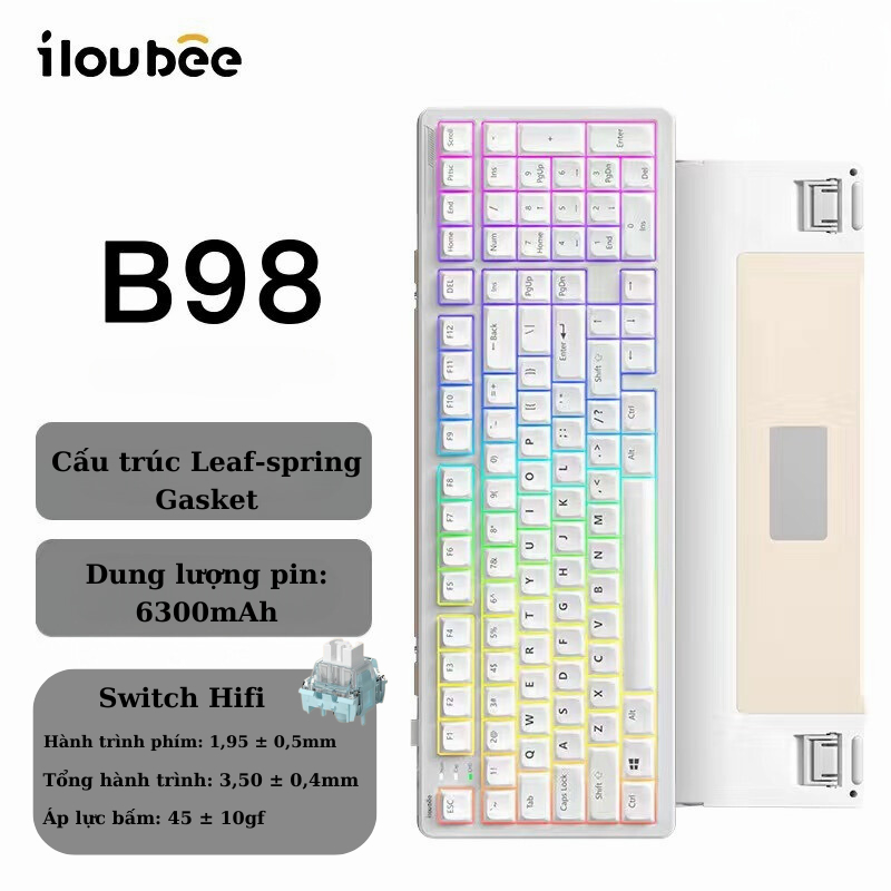Bàn phím cơ không dây Fullsize ILOUBEE B98 - 3 mode kết nối - Hotswap 5 pin - Cấu trúc Leaf Spring