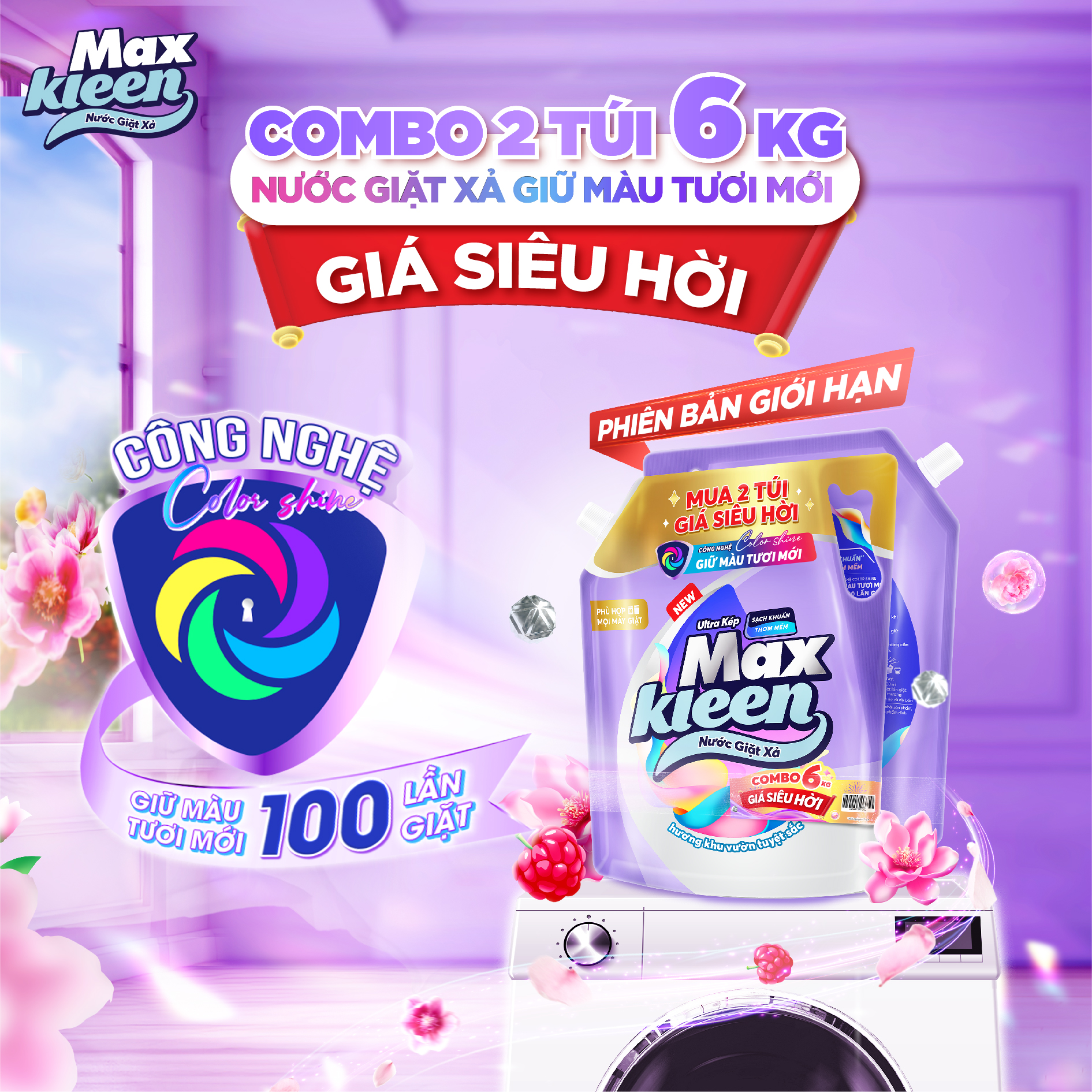 [MỚI] Combo 2 túi Nước giặt xả MaxKleen giữ màu tươi mới Hương Khu Vườn Tuyệt Sắc 3kg x 2 - Phiên bản giới hạn