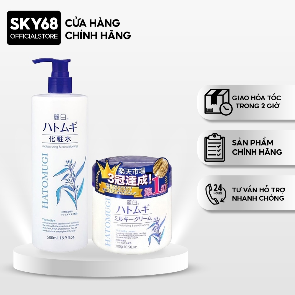 Combo Bộ sản phẩm dưỡng da trắng sáng ý dĩ REIHAKU HATOMUGI ( Toner 500ml + Kem 300g)