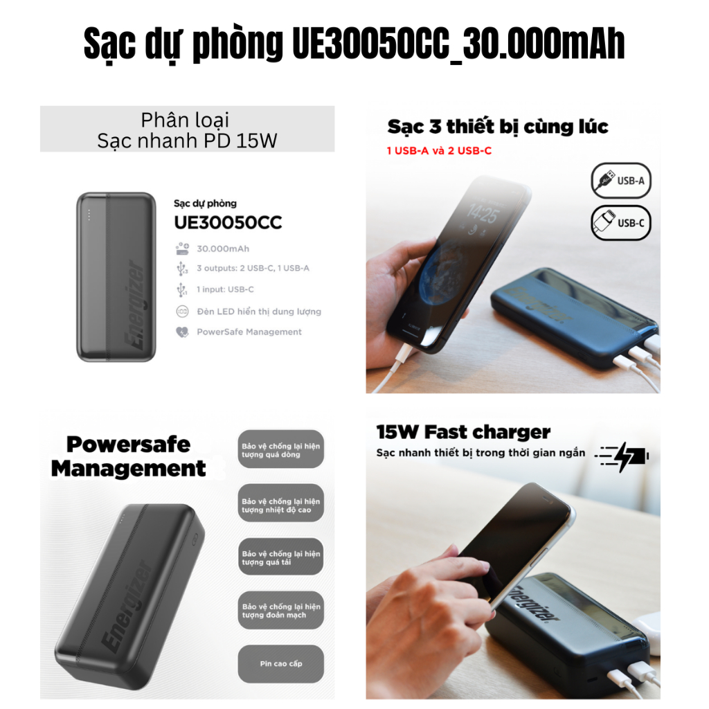 Sạc Dự Phòng Energizer 10000mAh/ 20000mAh/ 30000mAh Sạc Nhanh PD, Bảo Hành Chính Hãng 1 Năm