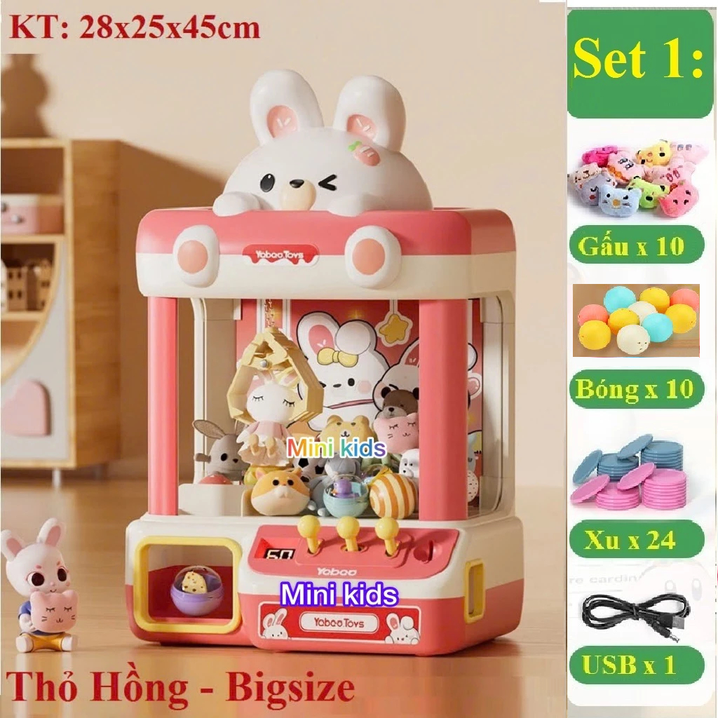 Máy gắp thú bông mini cho bé kích thước lớn, có nhạc nhiều mẫu mã, sẵn nhiều gấu bông, quà tặng cho bé trai bé gái