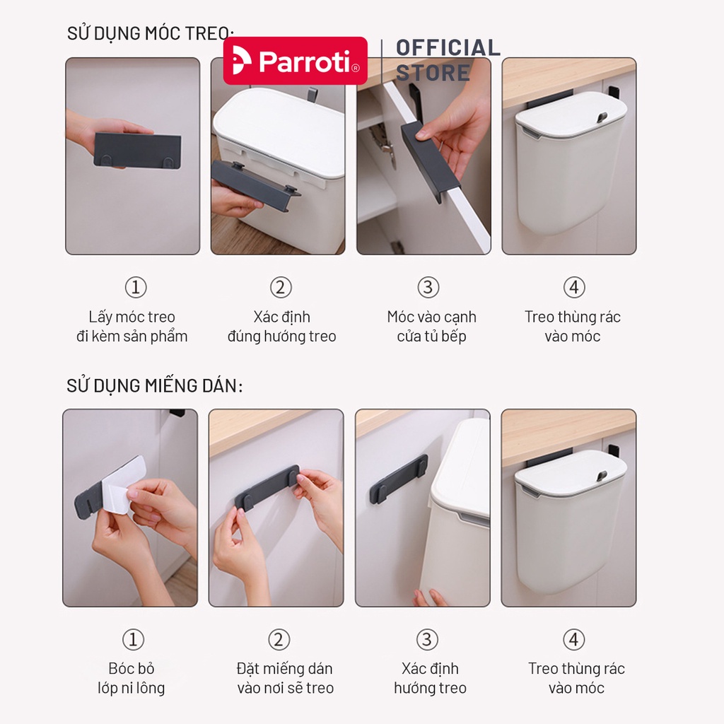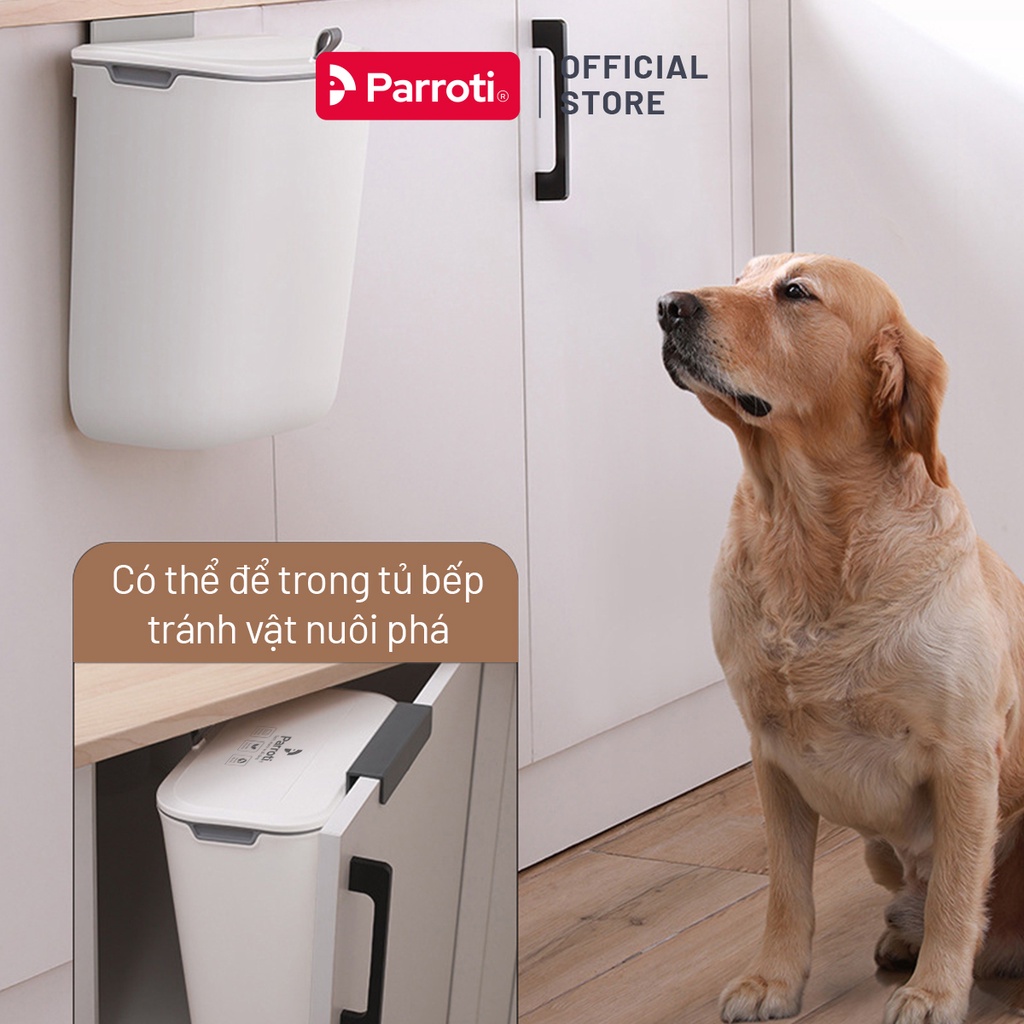 Thùng rác treo tủ bếp, thùng rác nhà tắm dán tường, có nắp đậy thông minh - Parroti Bin BN02