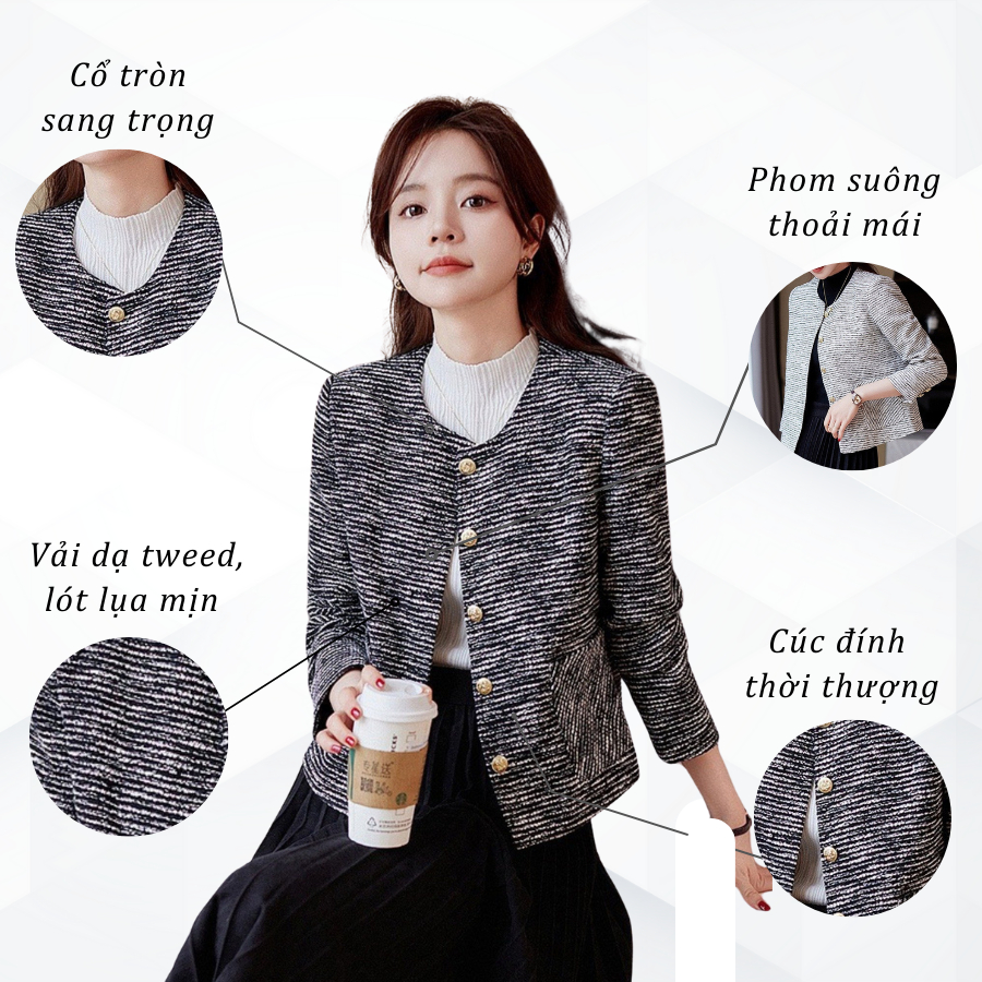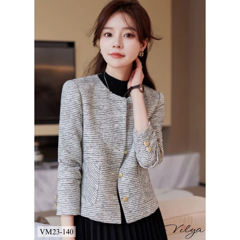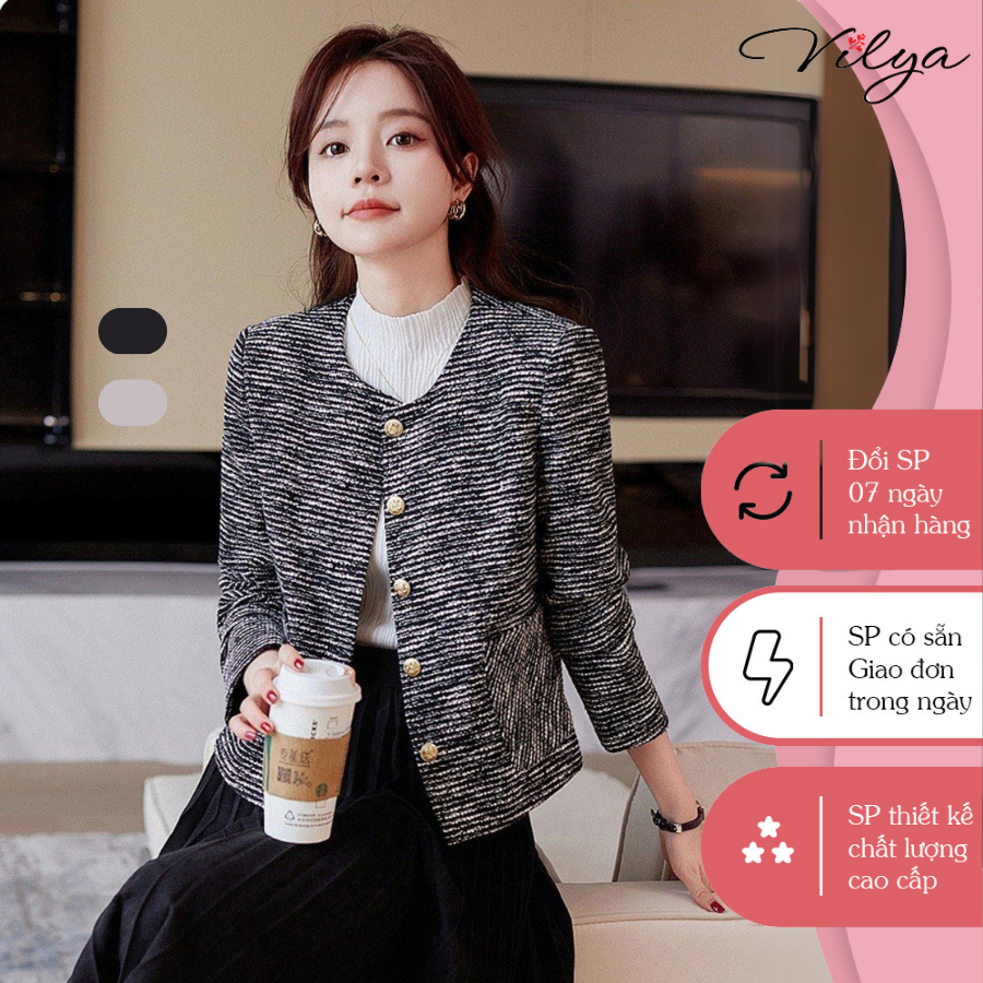 Áo khoác nữ dạ tweed dáng ngắn nữ VILYA cổ tròn hai lớp sang chảnh phong cách Hàn Quốc VM23-140