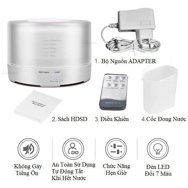 Máy xông tinh dầu trụ trong 500ml khuếch tán phun sông tinh dầu kèm điều khiển - DIFFUSERLUX