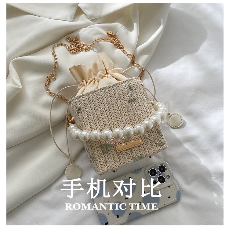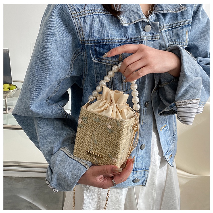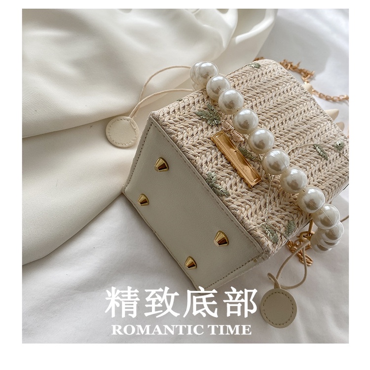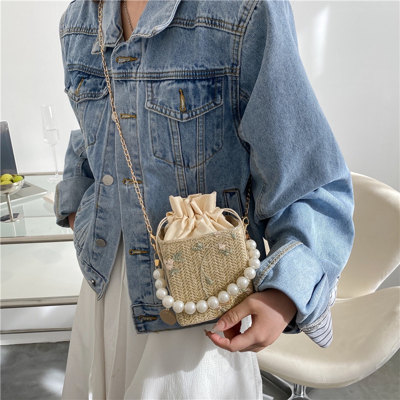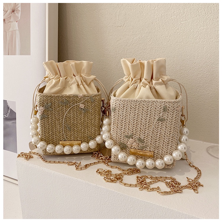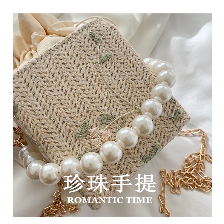 Túi Đeo JASMIN NOIR Vai Đan Cói Đính Ngọc Trai Phối Dây Xích Thời Trang Cho Nữ