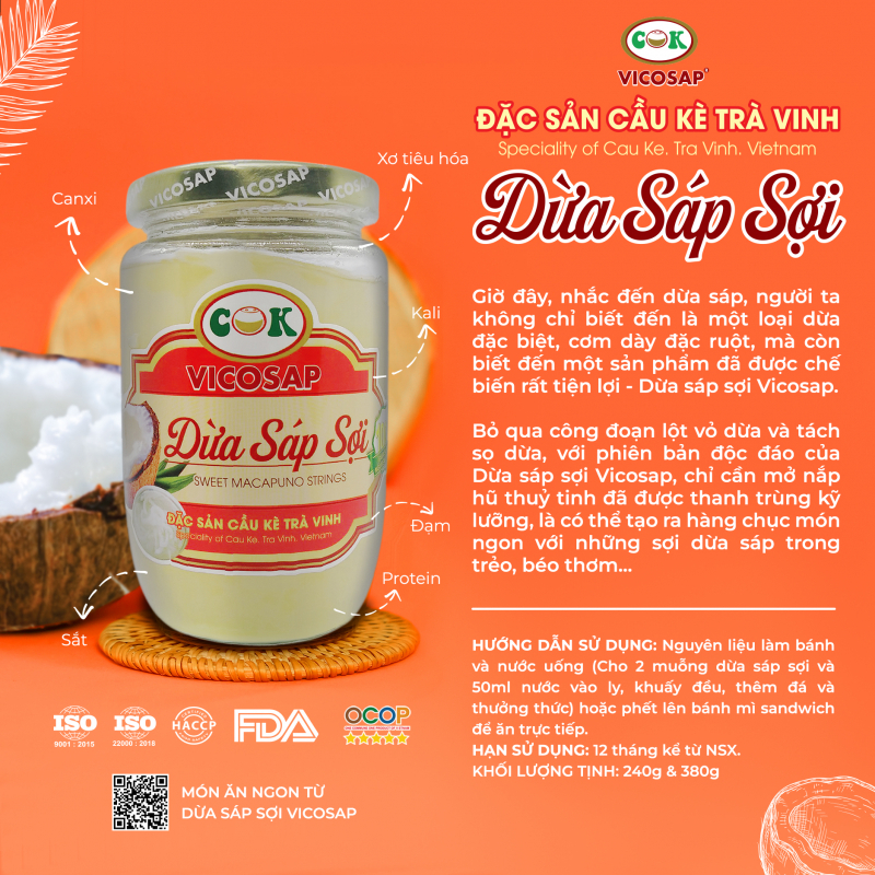 [OCOP 5 SAO] Dừa sáp sợi VICOSAP nguyên chất thơm ngon tiện lợi đặc sản Cầu Kè Trà Vinh