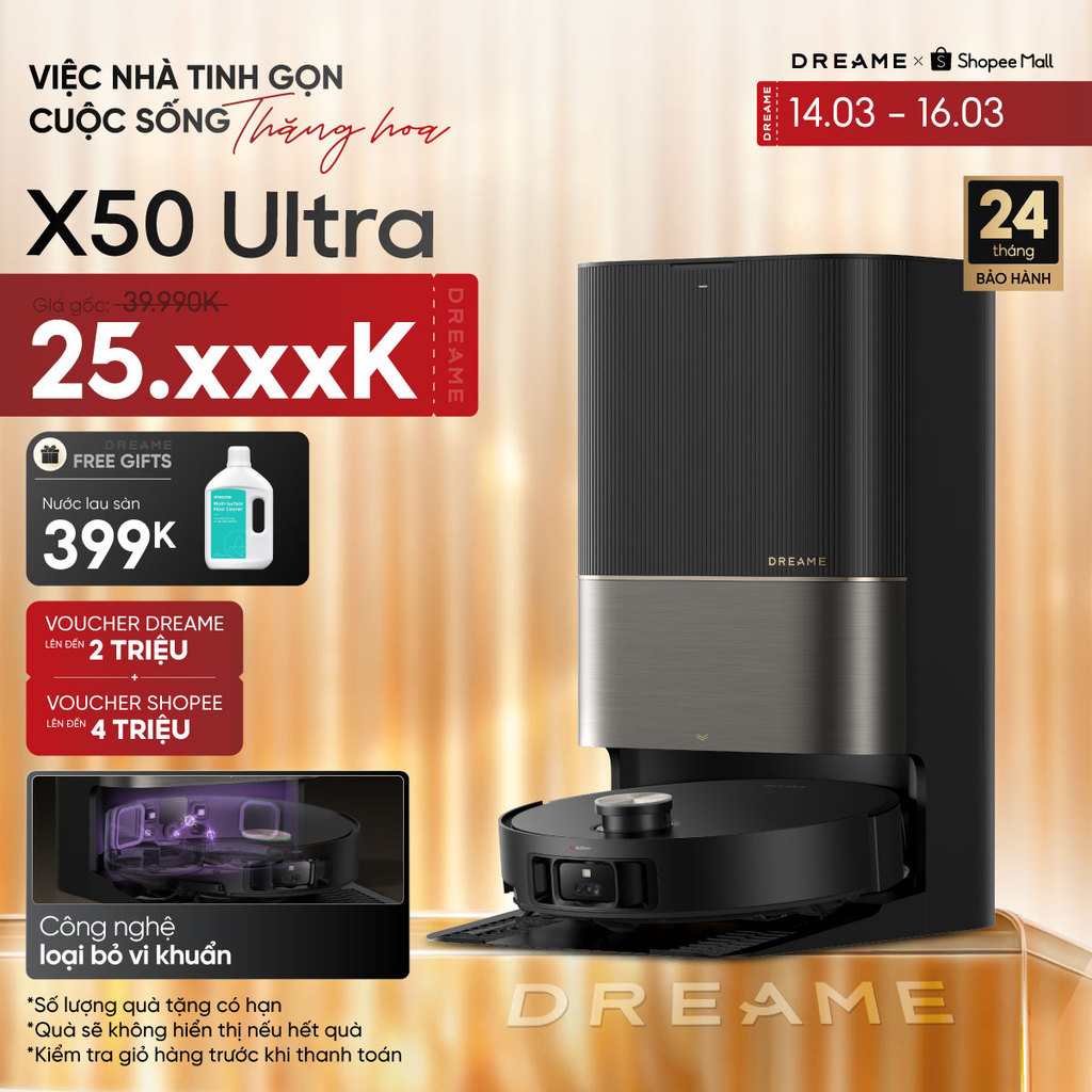 Dreame X50 Ultra/ X50 Pro Ultra Robot hút bụi thông minh | vượt thềm đến 6cm | Công nghệ AI tránh vật cản | BH 24 tháng