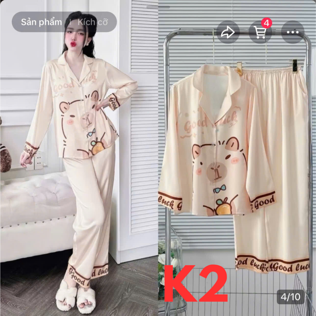 Đồ bộ mặc nhà, bộ Pijama Lụa 3D nữ quần dài tay dài chất lụa ánh mềm kiểu dáng trẻ trung