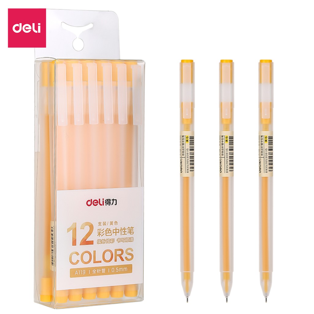 Bút mực gel 0.5mm nhiều màu Deli cute nắp đậy dùng để viết calligraphy trang trí sổ dễ thương nét chữ đẹp cao cấp A119
