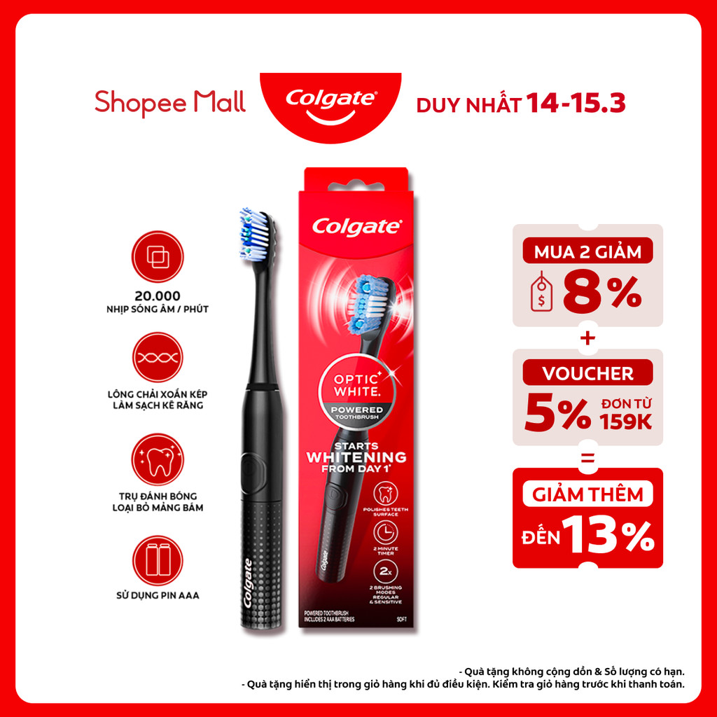 Bàn chải điện Colgate dùng pin, công nghệ sóng âm sạch mảng b ám, hỗ trợ trắng răng