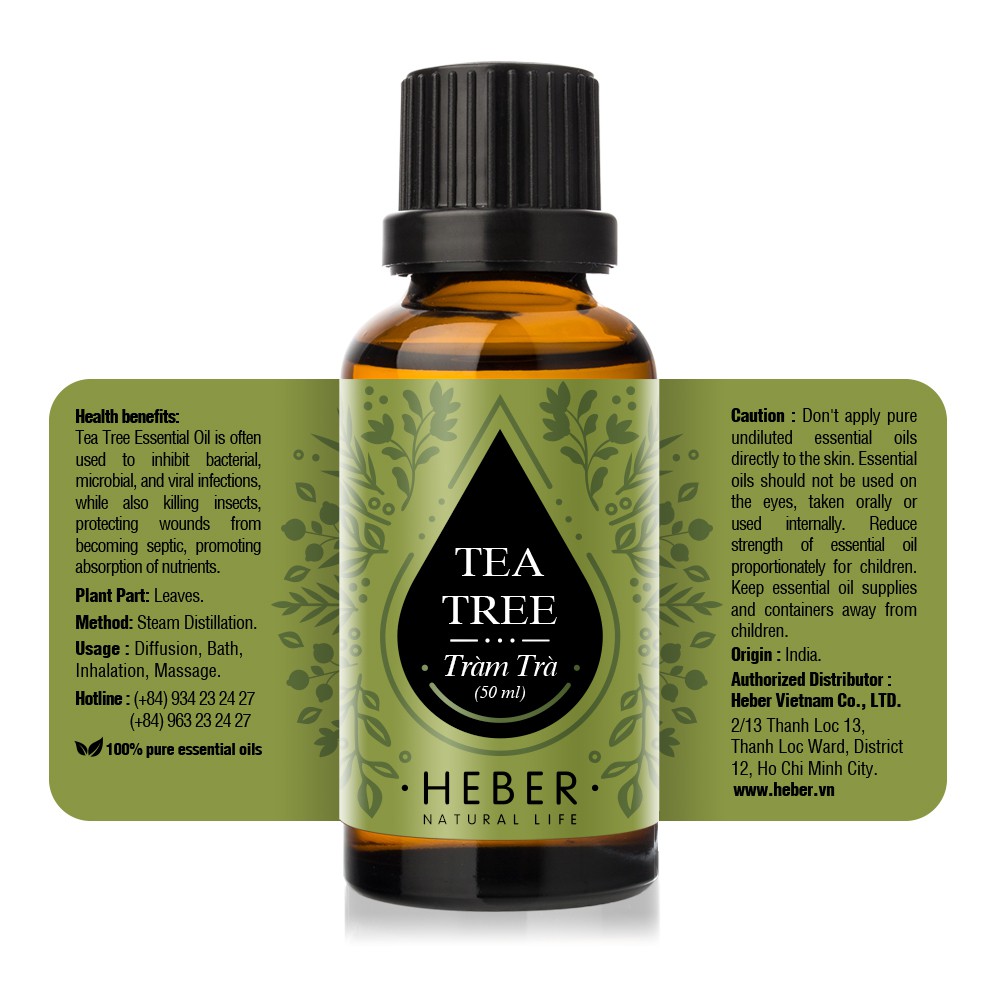 Tinh Dầu Tràm Trà Tea Tree Heber Natural Life, Thiên Nhiên Nguyên Chất Cao Cấp , 10ml/30ml/50ml