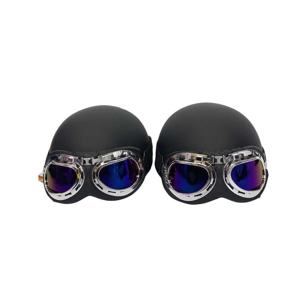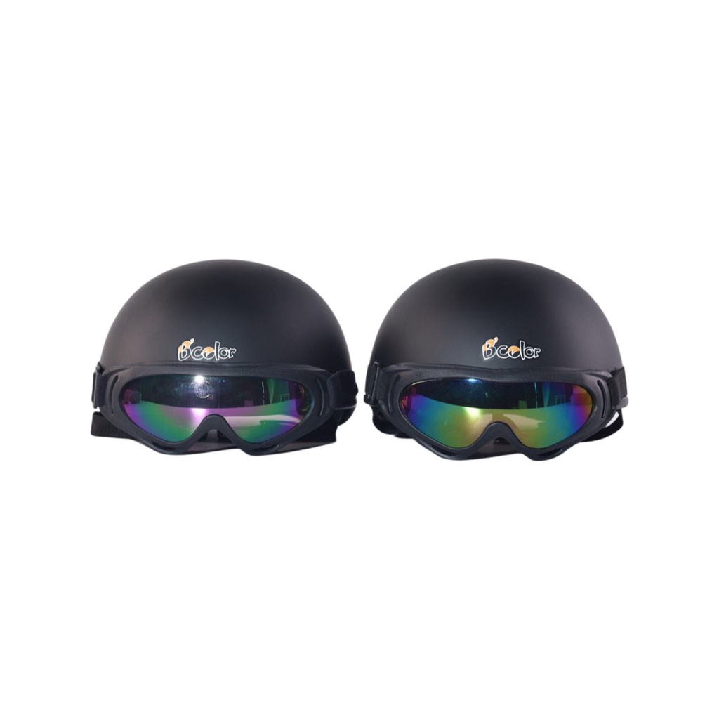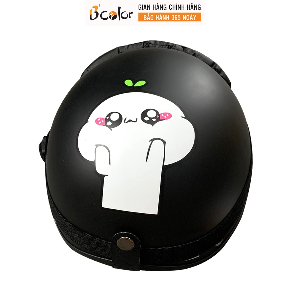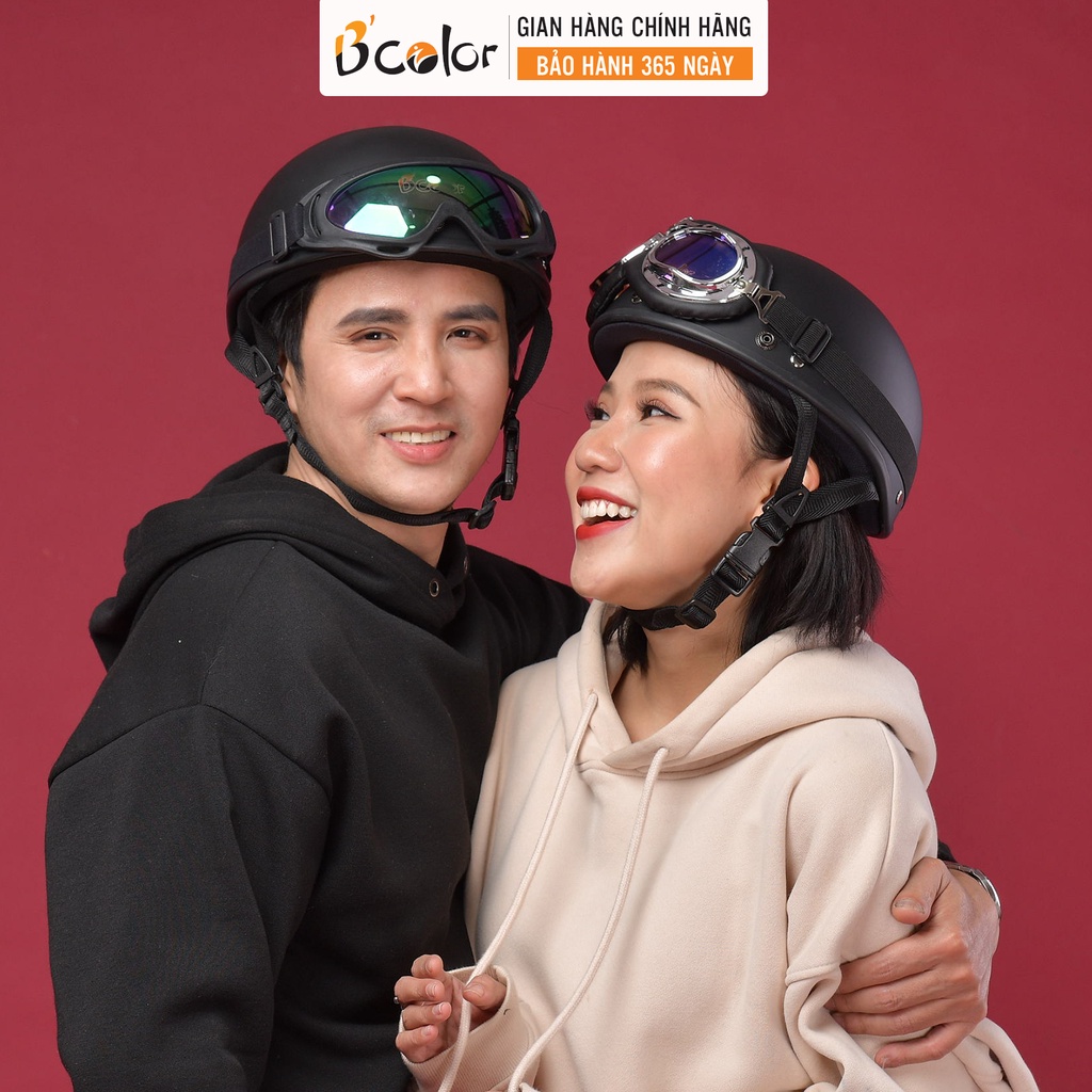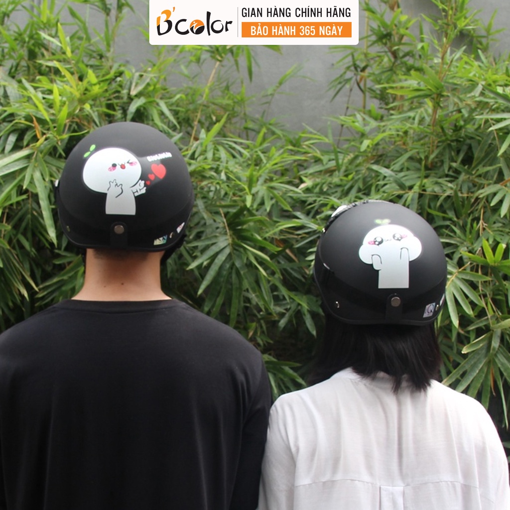 Mũ Bảo Hiểm Nửa Đầu Màu Đen Họa Tiết Cặp Đôi Kèm Kính Thời Trang Chính Hãng B'COLOR Combo 2 Mũ