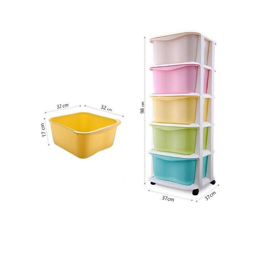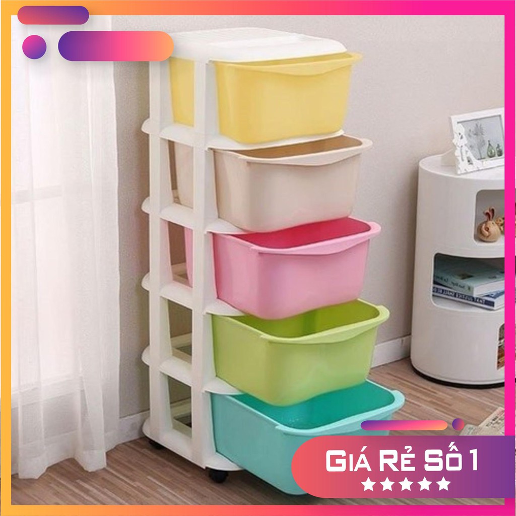 Tủ nhựa đa sắc ngăn kéo 5 tầng có bánh xe , đựng đồ chơi, quần áo.
