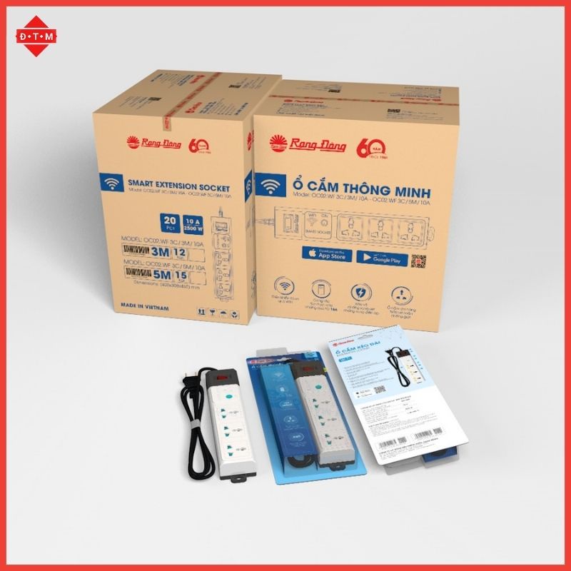 Ổ Cắm Thông Minh 10A - Ổ Cắm Wifi Rạng Đông 2500W - Chức Năng Hẹn Giờ, Điều Khiển Từ Xa, Dây dài 3m-5m - Bảo Hành 2 Năm