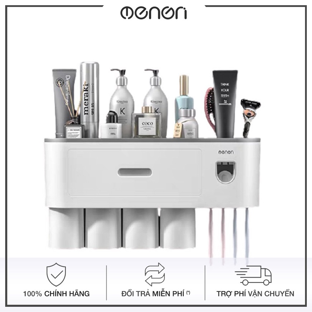 Kệ Nhả Kem Đánh Răng Tự Động OENON 5 Cốc Chất Liệu Nhựa ABS Lắp Đặt Dán Tường Gạch Men