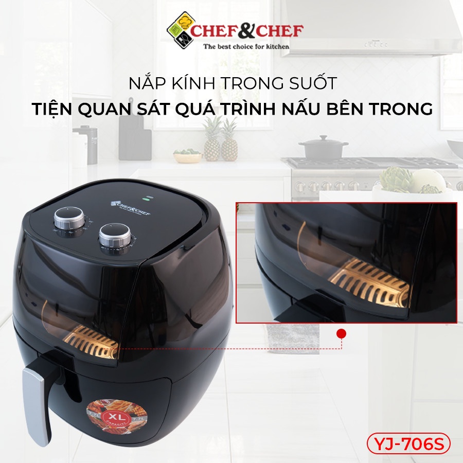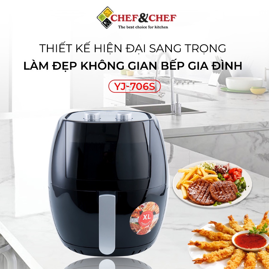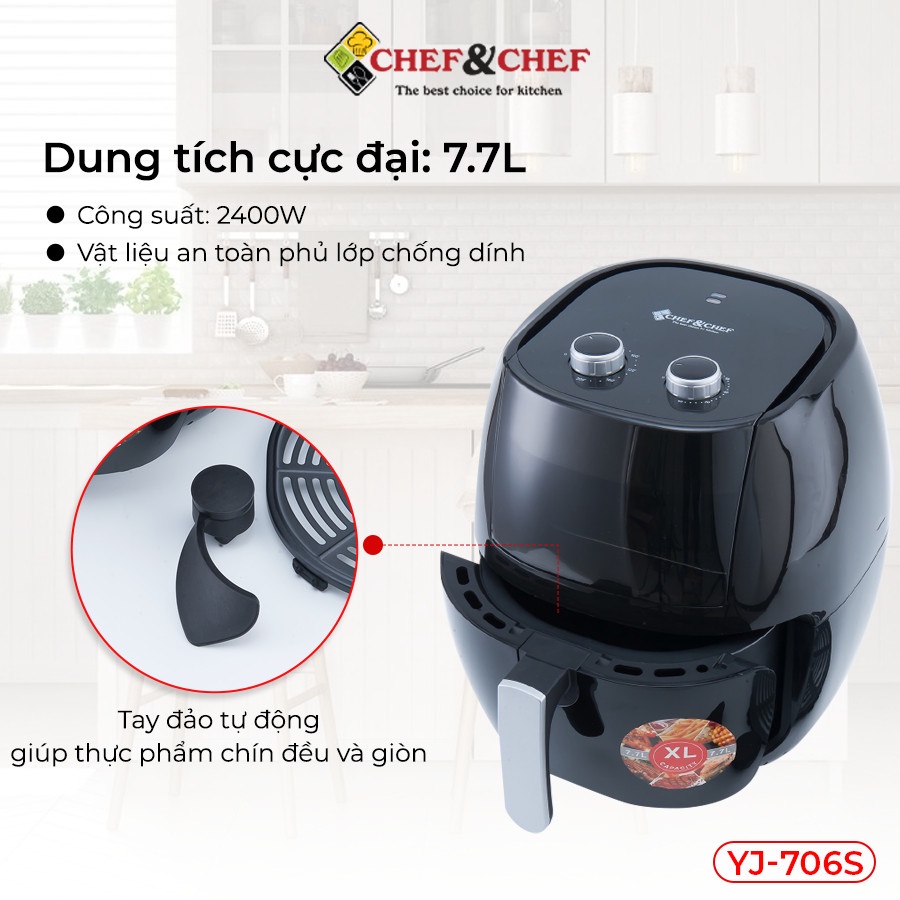 Nồi chiên không dầu CHEF&CHEF 7.7L ( YJ – 706S) nồi hoạt động êm ái, có tay đảo giúp bạn thoải mái mỗi khi sử dụng