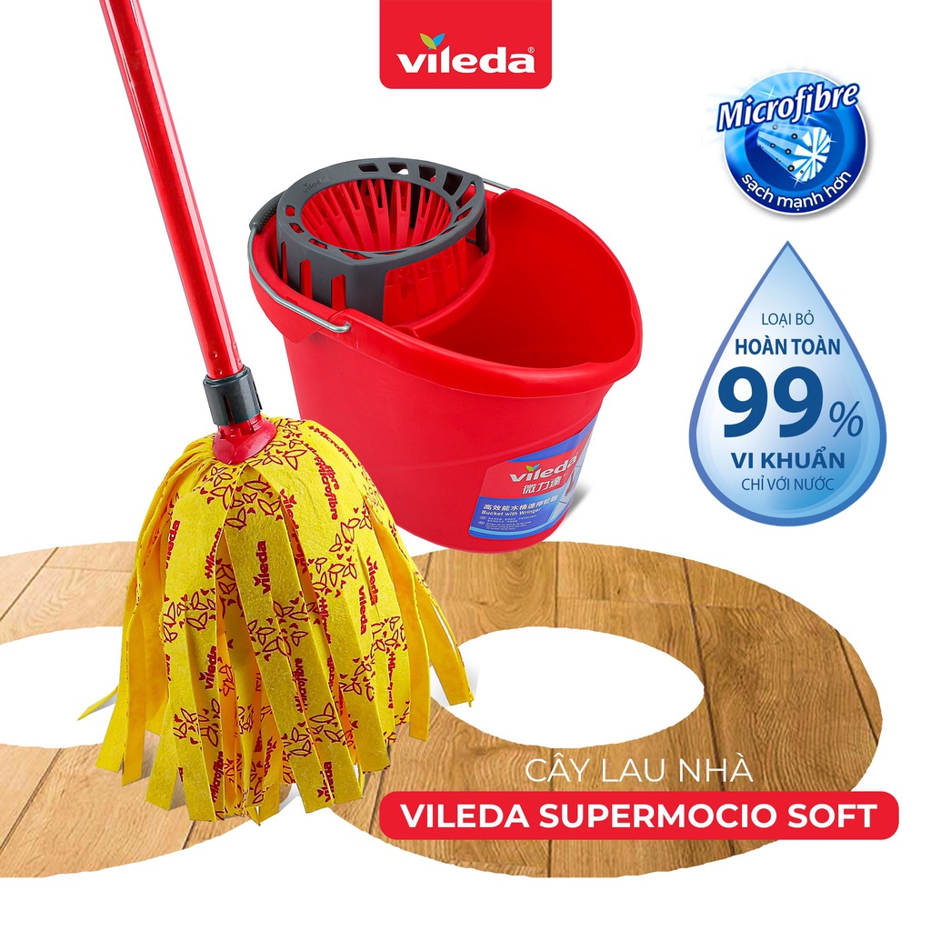 Bộ cây lau nhà VILEDA Supermocio Soft vải sợi siêu nhỏ, siêu thấm dùng cho sàn gỗ kèm xô giặt chuyên dụng