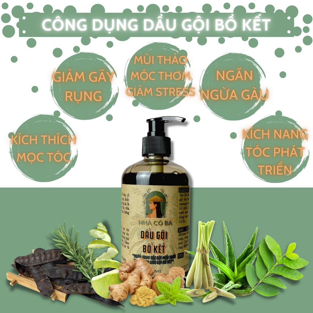 Dầu Gội Bồ Kết thảo dược sạch da đầu giảm gàu rụng tóc kích mọc tóc Nhà Cô Ba