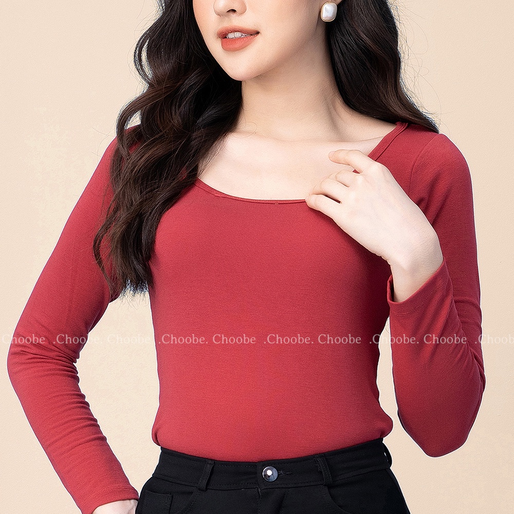 Áo phông nữ Choobe tay dài dáng ôm body vải thun cotton mềm mỏng trơn cổ tròn rộng co giãn tốt A40