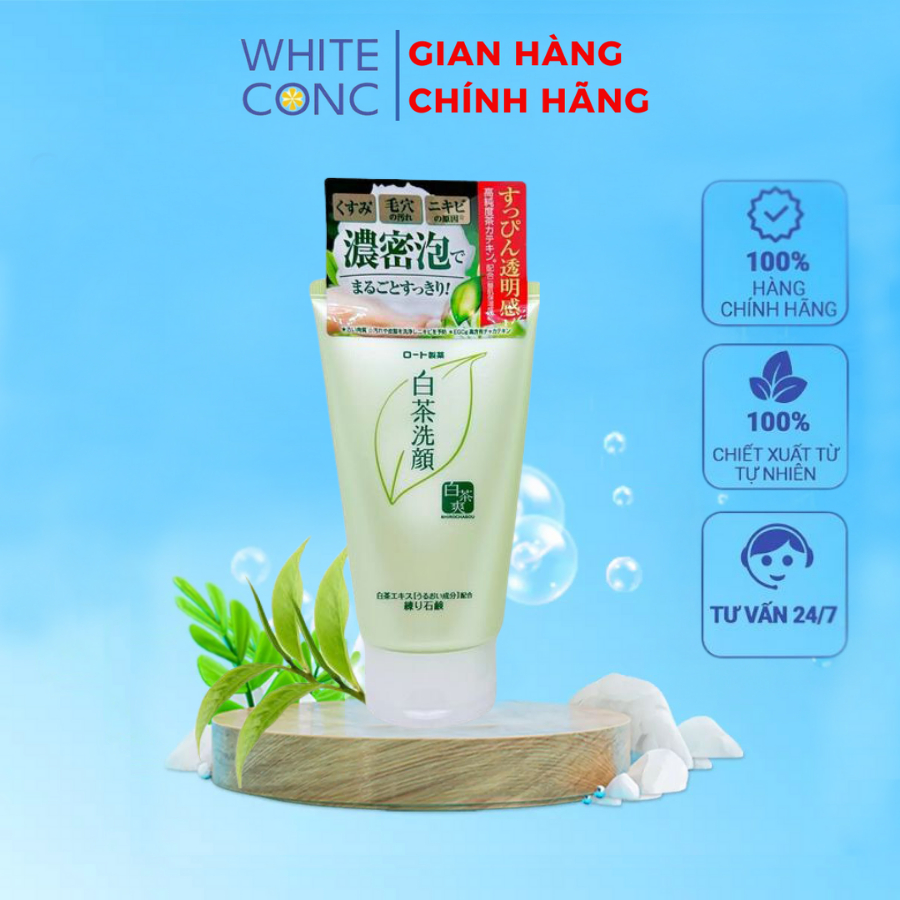 Sữa rửa mặt trà xanh cho da dầu mụn Rohto Shirochasou White Conc Nhật Bản 120g