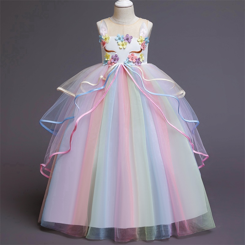 Đầm xòe NNJXD họa tiết hoa thêu phong cách công chúa xinh xắn dành cho bé gái